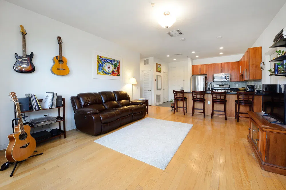 Spacious, bright & updated 2 bedroom/ 2 bathroom condo at the Upper Grand, one of Hoboken’s premier luxury buildings. This incredible home offers sweeping western sunset views being situated high on the 5th floor of this concrete and steel building. Upon entering the home, you are greeted by an open-concept floor plan featuring a chefs kitchen with an expansive living/dining room. The designer kitchen boasts granite countertops, stainless steel appliances, brand new custom back splash and recessed lighting. Brand new windows throughout entire home. The living space features 9-foot ceilings, brand new large bay windows and hardwood flooring. The master suite includes a walk-in closet and en-suite bathroom. The second bedroom offers an additional walk-in closet for ample storage. Second bathroom also features a deep soaking tub. All windows in the unit are brand new! Additional features of the home include: washer/dryer in unit, central A/C, and 1 deeded garage parking space. Building amenities include: a common courtyard, fitness center and residents' lounge. The neighborhood offers access to Hoboken’s new Northwest pop-up park, shopping (Trader Joe’s & Shoprite), restaurants, a movie theater, and NYC access via NJ Transit and the NY Waterways Ferry. This one is a can’t miss!