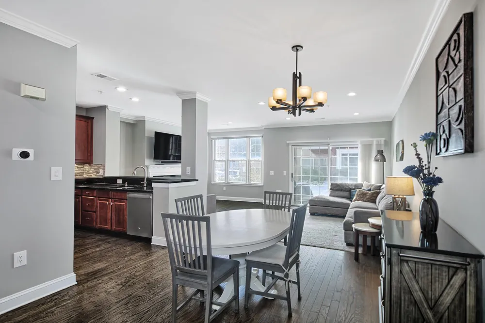 Experience refined living in this chic Bull’s Ferry–Bergen–style corner home, ideally situated on a quiet cul-de-sac. The open-concept living and dining area flows seamlessly to a private patio through a glass slider, creating an inviting space for everyday living and entertaining. A private balcony extends from the primary bedroom, offering an additional outdoor retreat. Interior features include hardwood floors, a pull-down TV mount above the fireplace, and a beautifully updated galley kitchen with granite countertops, a custom backsplash, garbage disposal and stainless steel appliances. Thoughtfully designed closet shelving enhances storage throughout the home. The primary bathroom has been elegantly renovated with a new shower, toilet, flooring, and a Calacatta Quartz countertop. All bathrooms feature new mirrors, lighting fixtures, and hardware. Additional upgrades include new blinds on every window, updated electrical outlets and switches, and freshly painted doors with modern hardware. Smart-home enhancements include a Google Nest thermostat and Alexa-enabled light switches. Parking accommodates two vehicles—one in a private garage equipped with storage shelving and an EV charger, and one in the driveway. This sought-after community offers exceptional amenities, including two pools with Jacuzzis, a tot lot, and a complimentary shuttle to the NY Waterway ferry. The 158 bus to NYC is just steps away, and the home is conveniently close to restaurants and shopping. This is an opportunity not to be missed.